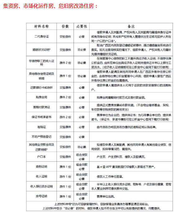 集资房、市场化运作房、危旧房改造住房贷款条件: